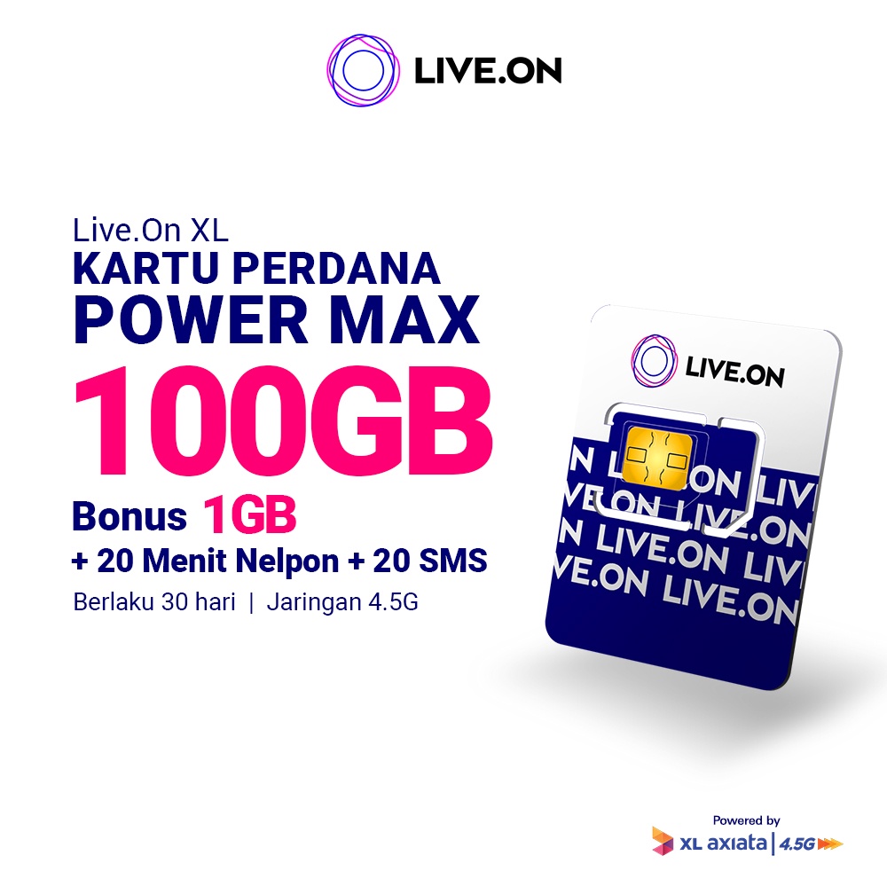Live.On Kartu Perdana Power Max 100GB adalah salah satu produk kartu perdana yang ditawarkan oleh Live.On. Kartu perdana ini menawarkan paket data dengan kuota yang sangat besar, yaitu 100GB dengan kecepatan 4G LTE. Dengan kuota sebesar ini, pengguna dapat dengan leluasa mengakses internet, streaming video, dan melakukan berbagai aktivitas online lainnya tanpa harus khawatir kuota habis.